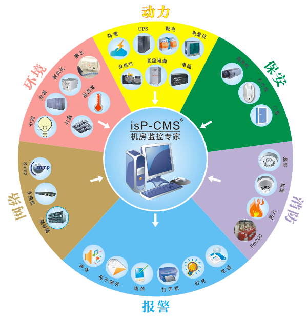 一套IDC機(jī)房管理系統(tǒng)的內(nèi)容主要有以下: 1.監(jiān)控對(duì)象 UPS電源(包含直流電源)、空調(diào)設(shè)備、漏水檢測(cè)、供配電系統(tǒng)、發(fā)電機(jī)、機(jī)房實(shí)際環(huán)境溫濕度、通風(fēng)系統(tǒng)、防雷系統(tǒng)、消防系統(tǒng)、視頻監(jiān)控、門禁監(jiān)控、網(wǎng)絡(luò)設(shè)備與應(yīng)用系統(tǒng)監(jiān)控、系統(tǒng)通信的監(jiān)視。 2.實(shí)時(shí)交互與智能分析 idc機(jī)房動(dòng)環(huán)系統(tǒng)與前端各種智能設(shè)備進(jìn)行實(shí)時(shí)交互,通過(guò)智能監(jiān)控、分析、控制,可在智慧機(jī)房管理平臺(tái)展現(xiàn)各類機(jī)房動(dòng)環(huán)參數(shù),使數(shù)據(jù)中心運(yùn)維人員及時(shí)了解idc機(jī)房的設(shè)備運(yùn)行狀況。 3.集中監(jiān)視 傳統(tǒng)機(jī)房管理制度為每日定時(shí)巡視,人工記錄設(shè)備運(yùn)行參數(shù),取得數(shù)據(jù)局限于某個(gè)時(shí)間段,精準(zhǔn)度低且易有誤差。idc機(jī)房動(dòng)環(huán)系統(tǒng)能做到集中監(jiān)控,問(wèn)題迎刃而解。 4.報(bào)警與預(yù)警 (1)多樣化的報(bào)警組、報(bào)警方式分配原則讓您隨時(shí)隨地接收到報(bào)警,包括按時(shí)段分配,按設(shè)備分配等方式; (2)報(bào)警方式包含短信、手機(jī)、郵件、語(yǔ)音、現(xiàn)場(chǎng)聲光、微信端推送等,保證告警系統(tǒng)及時(shí)發(fā)送,做到精確通知。 (3)故障預(yù)警機(jī)制可在故障產(chǎn)生前給管理人員發(fā)送通知,使得故障能免于產(chǎn)生,事先預(yù)防故障的產(chǎn)生,以減少財(cái)產(chǎn)的損失。