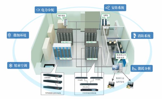 真正實現(xiàn)對機房內(nèi)溫濕度、電流、電壓、漏水、煙感、紅外、UPS、電源工作狀態(tài)等信號進行采集監(jiān)控,并實現(xiàn)告警。