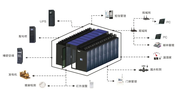第一,智能化機房應當有三維可視化管理,這有效實現遠程集中監控、遠程操作,實時動態呈現設備告警信息及設備參數,快速定位出故障設備,使維護和管理從人工被動看守的方式向計算機集中控制和管理的模式轉變。突破性的三維仿真技術是智能可視化數據中心建設的一個重要的組成部分,機房設備具有數量大、種類多、價值高、使用地點分散、使用周期長、缺少實時性管理、管理難度大等特點。而全三維的大屏可視化監控平臺,形象化的虛擬場景和真實數據相結合,增強機房設備、設施數據的直觀可視性、提高其利用率。 第二,擁有統一管理功能,這一功能可以將日常監測設備統一集成到機房動環監控系統進行統一管理,大大節約管理成本,大幅度減少巡邏時間,為企業節省人力物力的同時提高運營效率。在機房動環監控系統中調控各項監測終端設備,在設備離線時也會在第一時間向相關人員發出報警提醒,及時避免損失。 第三,擁有高管理水平,智能化機房減少值班人員用工數量,降低人力成本,提高數據中心動環、主設備管理水平,提高人員、施工管控能力。提高動環監測能力以及提高監測質量,從而有效防范安全風險。 第四,能夠實時顯示/導出歷史數據,各個測點的位置在實時顯示的同時, 也可以實現歷史數據查詢功能,機房動環監控系統中的數據可長期保存,甚至是保存三年之久。在任一監測參數出現異常情況時,盡管系統已經進行自我調節,但還是會將異常信息推送至管理人員,同時將異常記錄存儲于歷史數據中,方便后期查詢溯源。 第五,結合各類智能傳感技術,通過智能傳感器的信息監測以及微處理功能,設備會把采集到的模擬信號轉化成數字信號,給中央處理器處理,最終形成數字化的信息,展示出來,直觀且簡單易懂。比如:使用溫濕度傳感器,將收集到溫濕度數據實時顯示在液晶屏幕上。 為保證無人值守機房的安全穩定正常工作,一套可遠程的對機房進行7*24小時實時監控、操作和處理的運營系統非常重要。簡單的說,可自動的、智能的對機房內的所以目標進行監測,又能夠及時發現問題,并通知相關人員進行處理的系統才稱的上是智能化機房。