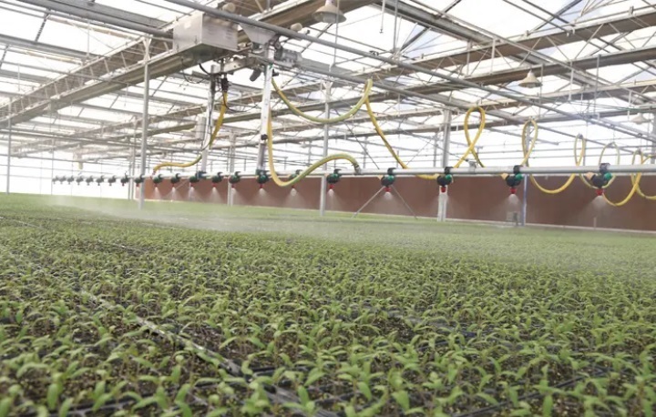 三、通風(fēng)系統(tǒng) 通風(fēng)系統(tǒng)通常分為兩種。一種是頂部開(kāi)窗通風(fēng)系統(tǒng),另一種是側(cè)開(kāi)窗通風(fēng)系統(tǒng)。通風(fēng)系統(tǒng)是溫室控制系統(tǒng)的重要組成部分,起作用在于能夠有效的保障溫室內(nèi)部的空氣流動(dòng),使溫室內(nèi)部的二氧化碳分布更加均勻。 1、頂部開(kāi)窗通風(fēng)系統(tǒng):頂部開(kāi)窗是在玻璃溫室的人字梁位置安裝了U型齒條,電機(jī)通過(guò)轉(zhuǎn)動(dòng)連接傳動(dòng)軸工作,傳動(dòng)軸帶動(dòng)U型齒條緩慢的將窗戶推開(kāi)和關(guān)閉,保證屋面全開(kāi)通風(fēng)、除濕、降溫效果好。 2、側(cè)開(kāi)窗通風(fēng)系統(tǒng):側(cè)開(kāi)窗通風(fēng)系統(tǒng)是目前常見(jiàn)的一種開(kāi)窗機(jī)構(gòu),附屬配件隨機(jī)構(gòu)整體的不同而有差異。推拉側(cè)開(kāi)窗機(jī)構(gòu)性能穩(wěn)定、運(yùn)行可靠安全、承載力強(qiáng)、傳動(dòng)效率高、運(yùn)轉(zhuǎn)精準(zhǔn)、便于實(shí)現(xiàn)自動(dòng)控制。