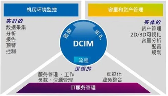 一、DCIM管理框架 DCIM指的是數據中心基礎設施管理。數據中心基礎設施管理能夠對數據中心的信息技術設備及基礎設施進行實時監測、控制和管理,它的出現促成了數據中心中信息技術和設施管理的總和集成,不管在管理形式、技術方法還是管理范疇以及應用上都發生了質的變化,對數據中心有效的綜合管理具有積極的作用,因此成為了數據中心管理的主流趨勢。 DCIM的框架結構可從物理框架、功能框架以及邏輯框架來解釋。 DCIM的物理框架由按DCIM涉及的主要類別和主要作用、功能、內容或對象進行劃分。DCIM的物理框架劃分為5個層次。分別為基礎設施現場層、網絡傳輸控制層、管理中心設備層、綜合管理軟件層及人力資源文檔層。 DCIM功能框架是數據中心基礎設施管理核心功能的組成與體現,DCIM系統框架按照核心功能模塊的維度可分為:資產管理、容量管理、能源管理、場地設施管理、連接管理、變更管理等。同時指的一提的是,運維流程和可視化工具是管理的基礎與手段。 DCIM的邏輯框架由DCIM所涉及的三個專業領域組成,分別是基于“數據中心監控系統”的物理基礎設施數據采集及分析;基于“數據中心基礎設施管理”的綜合功能模塊,資源、資產、容量、連接、性能和可視化管理工具;基于“數據中心運維管理”的運維業務管理的流程與規則。