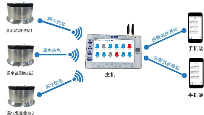 二、針對漏水(漏液)解決方案 1、中央空調系統漏水檢測方案 中央空調系統分布在樓宇中的各個樓層間,涉及區域面積較大,適合定位式漏水檢測方案,需要在每個樓層都安裝定位式漏水控制器和聲光報警器,在天花板進水管、排水管下方安裝水槽,在水槽下方鋪設定位式漏水感應繩,用引出線、終止端將控制器、感應繩和報警器連接起來形成一個完整的回路,一旦出現液體泄漏時聲光報警器發出蜂鳴聲,同時在監控軟件上顯示具體泄漏位置。整套漏水檢測系統帶智能接口,可接入樓宇自控系統,達到統一管理的目的。 2、管道漏水檢測方案 樓宇內水管管道眾多,每個樓層均有生活用水、消防用水等水管分布,一旦出現水管破裂將會造成巨大損失,影響正常供水等。因此監測水管漏水勢在必行。我們需要在操作室安裝定位式漏水控制器以及聲光報警器,利用控制器自帶的一組干接點,當有泄漏時發出聲光報警提示,并在監控軟件上展現具體泄漏位置。同時還可接入外接語音、短信、郵件等模塊進行報警通知。 3、電梯系統漏水檢測方案 樓宇電梯大多采用升降式電梯,電梯井可能會因地下水通過壓力有井外箱井內滲透,也可能天臺漏水導致電梯房進水損壞橋箱主板等多種原因造成電梯漏水,從而影響電梯正常工作,人們無法正常出入樓宇。當然,電梯系統漏水檢測方案需要根據泄漏情況來設計。 在樓宇的監控室安裝一個不定位式漏水控制器和聲光報警器,圍繞電梯井的底部鋪設不定位式漏水感應繩,用引出線和終止端把控制器和感應線連接起來形成一個回路。可直接接入監控室上位PC機,通過軟件進行監控。 另外在安裝一個定位式漏水控制器和聲光報警器,利用控制器自帶的一組干接點。當泄漏發生時產生報警提示,同時在監控軟件上顯示泄漏位置。 4、地下車庫漏水檢測方案 在樓宇的車庫里安裝定位式漏水控制器和聲光報警器,利用控制器自帶的一組干接點,當出現泄漏時立刻發出聲光報警提示,同時在監控軟件上顯示具體泄漏位置。圍繞停車場的四角墻角鋪設定位式漏水感應繩,用引出線、跳接線和終止端把控制器和感應繩連接起來形成一個完整的回路,并用固定膠固定起來。 5、供配電系統漏液檢測方案 在發電機、蓄電池組的下方鋪設漏水感應繩,在數據中心操作室采集箱安裝一個定位式測漏控制器和一個聲光報警器,用引出線、跳接線和終止端將控制器、報警器和感應繩連接起來形成一個回路,并連接電腦,通過監控軟件進行監控和管理。