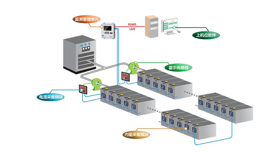 蓄電池是機房、基站、發電站、配電室等地的重要組成部分,通過對蓄電池的參數(電壓、電流、頻率、因素、內阻等)和運行狀態(充放電、運行溫度等)的全方位監控,能夠保障蓄電池安全運行,確保整個電力系統的穩定供電。 一、不監控蓄電池可能會造成后果 1、運行溫度過高,導致計算機設備以及UPS電源壽命縮短,故障率提高。 2、蓄電池使用時間過長,出現鼓包而不知最終導致爆炸事故的發生。 3、異常充電產生大量的氫氣,極其發生爆炸,另外蓄電池發生短路后不及時發現引發火災。 二、蓄電池監控系統監控內容 1、監測蓄電池的電壓、電流、頻率、因素、溫度等參數,及時發現并處理蓄電池的過充、過放、短路、過溫、鼓包等安全問題,防止電池發生事故、損壞甚至爆炸等危險情況。 2、利用通信技術,將蓄電池監測數據傳輸到遠程監控中心或設備上,實現對電池狀態的遠程監測、運維和管理,提高電池的運行效率和管理效果。 3、根據電池監測數據和預測算法,推斷電池的剩余容量、剩余壽命以及健康度等指標,為用戶提供準確的電池狀態評估,幫助其合理規劃使用電池和預防故障。 4、通過監測和分析電池參數的變化,及時發現電池故障或異常情況,并定位故障原因,以便進行維修或更換,提高電池系統的可靠性和穩定性。 總的來說,蓄電池監控的最大作用是確保電池的安全運行,優化電池的性能,評估電池的健康狀況,診斷電池故障并進行維護,同時實現對電池系統的遠程監控和管理,從而提高電池的可靠性、壽命和性能。