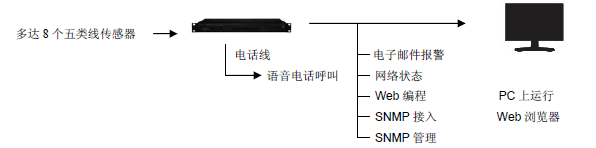 Sensaphone IMS-1000機房環境監控系統具備的產品完善且優越的產品特點,利用這些特點可以簡單、便利、隨時隨地的對機房環境以及設備進行監控和管理。 1、帶8個輸入和1個繼電器輸出