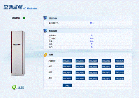 1、功能要求 2、解決方案 1.系統(tǒng)能夠通過空調(diào)廠家提供的通訊接口(RS232或RS485),并使用軟件模塊對(duì)精密空調(diào)進(jìn)行遠(yuǎn)程遙控、遙信、參數(shù)監(jiān)測(cè)、故障診斷。 2.使用軟件模塊根據(jù)機(jī)房?jī)?nèi)溫度情況遠(yuǎn)程聯(lián)動(dòng)(手動(dòng))開、關(guān)空調(diào),做到保護(hù)空調(diào)、節(jié)約用電。 3.用圖形和顏色變化來顯示空調(diào)的工作情況,故障時(shí)將報(bào)警。每個(gè)空調(diào)的風(fēng)機(jī)故障、過濾網(wǎng)阻塞等的監(jiān)測(cè)。檢測(cè)空調(diào)的開關(guān)狀態(tài)(具體參數(shù)由所提供的通訊協(xié)議確定)。 4.報(bào)警時(shí)電子地圖顏色相應(yīng)改變,發(fā)出聲光報(bào)警信號(hào)并自動(dòng)撥號(hào)和手機(jī)短信通知相關(guān)人員前來處理;通過歷史記錄直觀看出空調(diào)機(jī)的運(yùn)行品質(zhì),防止小的故障擴(kuò)大。 二、普通空調(diào)監(jiān)測(cè)系統(tǒng) 1、功能要求 2、解決方案 通過紅外遙控控制各種普通空調(diào),無須布線,具有學(xué)習(xí)功能,可以學(xué)會(huì)各種品牌空調(diào)的遙控器指令,從而實(shí)現(xiàn)對(duì)與之相連的空調(diào)的智能控制。 系統(tǒng)還可以測(cè)量環(huán)境溫度和濕度,并根據(jù)環(huán)境溫度自動(dòng)控制空調(diào)開關(guān)和斷電重啟空調(diào),開空調(diào)和關(guān)空調(diào)的門限值可分別設(shè)置。 該機(jī)房空調(diào)監(jiān)控系統(tǒng)可以保護(hù)你的機(jī)房空調(diào),同時(shí)也起到良性循環(huán)地促進(jìn)設(shè)備安全的作用。