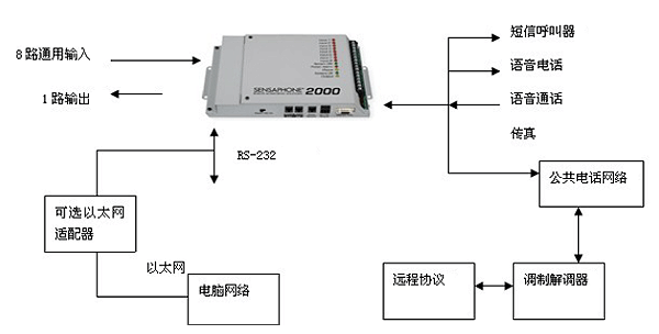 Sensaphone FGD-2000具有8路信號(hào)輸入端口,可接收各種標(biāo)準(zhǔn)工業(yè)傳感信號(hào)。配有RS-232端口,可通過基于MS Windows操作系統(tǒng)的強(qiáng)大管理軟件連接本地計(jì)算機(jī);可按照預(yù)設(shè)時(shí)間間隔詳細(xì)記錄各端口監(jiān)測(cè)數(shù)據(jù),采樣儲(chǔ)量高達(dá)32,000條;可自動(dòng)分析歷史數(shù)據(jù)并生成報(bào)表及三維圖表,原始數(shù)據(jù)可導(dǎo)出為標(biāo)準(zhǔn)數(shù)據(jù)庫(kù)格式;內(nèi)置14.4Kbps調(diào)制解調(diào)器,用戶可隨時(shí)進(jìn)行遠(yuǎn)程登錄管理;可通過電話撥入收聽現(xiàn)場(chǎng)語(yǔ)音報(bào)告。可通過撥號(hào)方式進(jìn)行語(yǔ)音報(bào)警或?qū)⒕瘓?bào)信息發(fā)送至計(jì)算機(jī)系統(tǒng)、傳真機(jī)、自動(dòng)傳呼機(jī),警報(bào)發(fā)送設(shè)置多達(dá)32路;用戶可通過錄音模塊自行錄制警報(bào)信息。