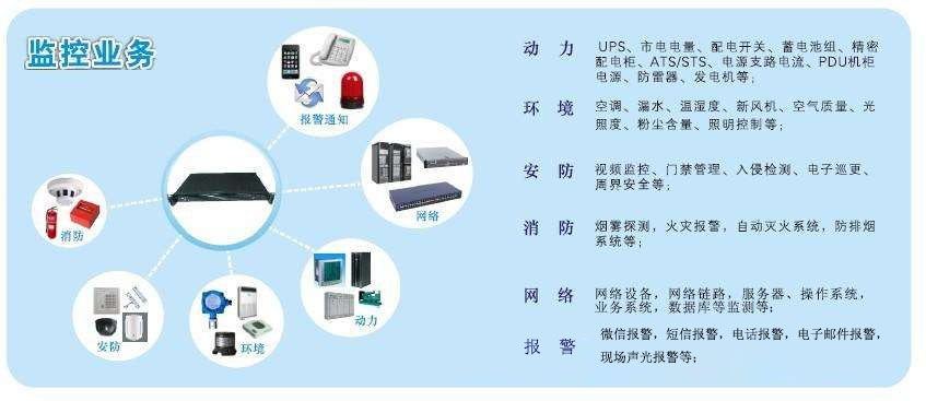 完整的機房監控系統是一套由各個子系統組成的機房集中監控管理平臺,如動力系統、環境系統、消防系統、保安系統、網絡系統、報警系統等,各個系統主要負責監視各系統設備的運行狀態及工作參數。