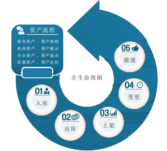 資產管理系統,以數據中心資產生命全周期為管理基礎,深度切合實際管控需求,實現資產從采購、出入庫、上下架、變更、處置、調撥等環節的全生命周期管控。同時通過獨特的資產U位精準級定位、可視化操作、移動管理、資產維保管理等功能運用,實現數據中心資產運維管理向規范化、智能化、精細化、可視化的全面發展。